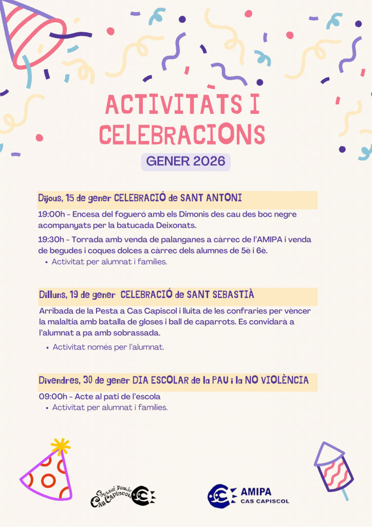 Aquí teniu el vídeo de la festa de Sant Antoni i Sant Sebastià 2026 del CEIP Cas Capiscol.